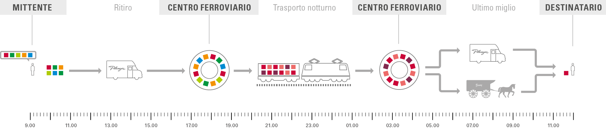 A Zermatt, dove vige un divieto di circolazione, la consegna dei pacchi nell’affollata Bahnhofstrasse è molto impegnativa. Ma noi ci riusciamo con un solo «motore». Un paese di alta montagna, pittoresco, molto amato, unico nel suo genere e senza auto: Zermatt è tutto questo. Perciò, qui il traffico aumenta di continuo. In certe giornate, ai 5430 abitanti si aggiungono fino a 30 000 turisti e 500 auto elettriche, con merci e passeggeri. Nei vicoli di questo gioiellino del Vallese può diventare molto difficile circolare. Il comune ha quindi inasprito drasticamente il codice della strada: tra le 12 e le 19 sono vietati tutti i servizi di collegamento nella Bahnhofstrasse, persino agli abitanti locali.